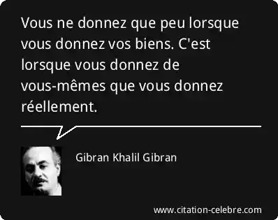 Vous ne donnez que peu lorsque vous donnez vos biens. C'est lorsque vous donnez de vous-mêmes que vous donnez réellement.