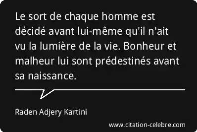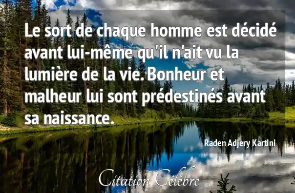 Le sort de chaque homme est décidé avant lui-même qu'il n'ait vu la lumière de la vie. Bonheur et malheur lui sont prédestinés avant sa naissance.