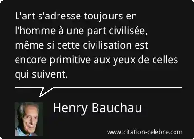 L'art s'adresse toujours en l'homme à une part civilisée, même si cette civilisation est encore primitive aux yeux de celles qui suivent.