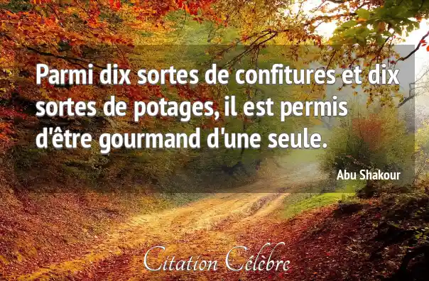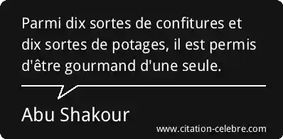 Parmi dix sortes de confitures et dix sortes de potages, il est permis d'être gourmand d'une seule.