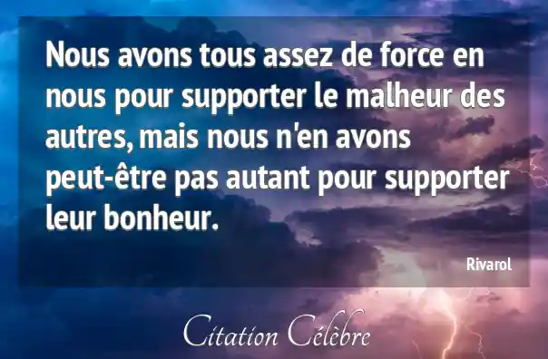 Nous avons tous assez de force en nous pour supporter le malheur des autres, mais nous n'en avons peut-être pas autant pour supporter leur bonheur.