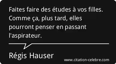 Citation Régis Hauser etudes : Faites faire des études à vos filles. Comme ça, plus...