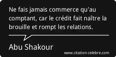 Citation Abu Shakour car : Ne fais jamais commerce qu'au comptant, car le crédit fait...