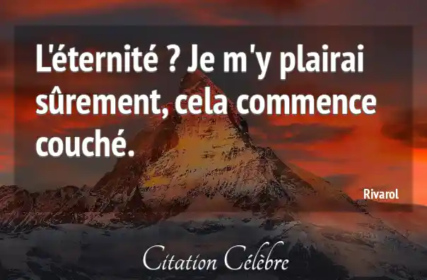 L'éternité ? Je m'y plairai sûrement, cela commence couché.