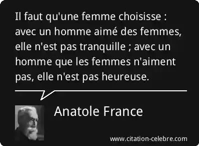 Il faut qu'une femme choisisse : avec un homme aimé des femmes, elle n'est pas tranquille ; avec un homme que les femmes n'aiment pas, elle n'est pas heureuse.