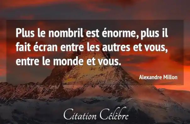 Plus le nombril est énorme, plus il fait écran entre les autres et vous, entre le monde et vous.