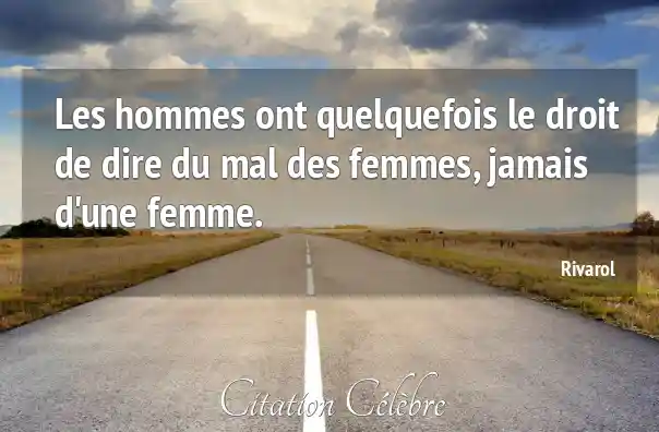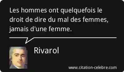 Les hommes ont quelquefois le droit de dire du mal des femmes, jamais d'une femme.