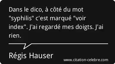Dans le dico, à côté du mot "syphilis" c'est marqué "voir index". J'ai regardé mes doigts. J'ai rien.