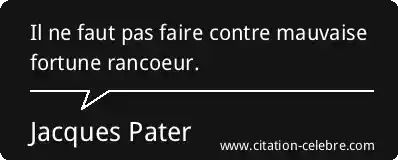 Il ne faut pas faire contre mauvaise fortune rancoeur.