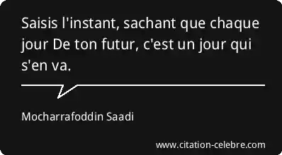 Saisis l'instant, sachant que chaque jour De ton futur, c'est un jour qui s'en va.