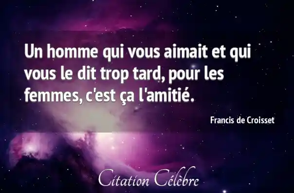 Un homme qui vous aimait et qui vous le dit trop tard, pour les femmes, c'est ça l'amitié.