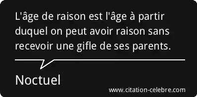 L'âge de raison est l'âge à partir duquel on peut avoir raison sans recevoir une gifle de ses parents.