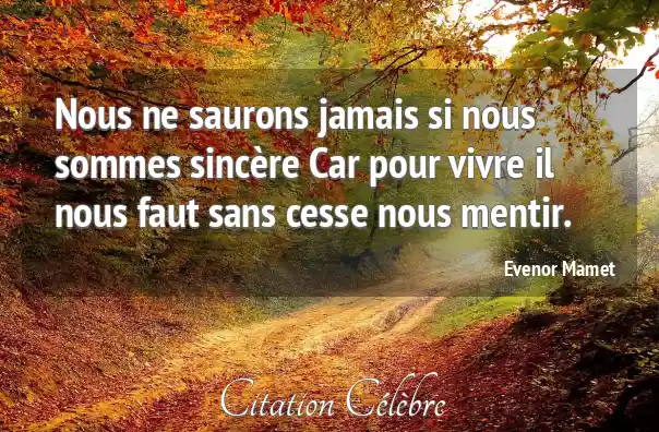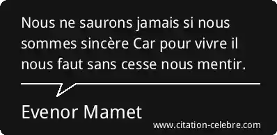 Nous ne saurons jamais si nous sommes sincère Car pour vivre il nous faut sans cesse nous mentir.