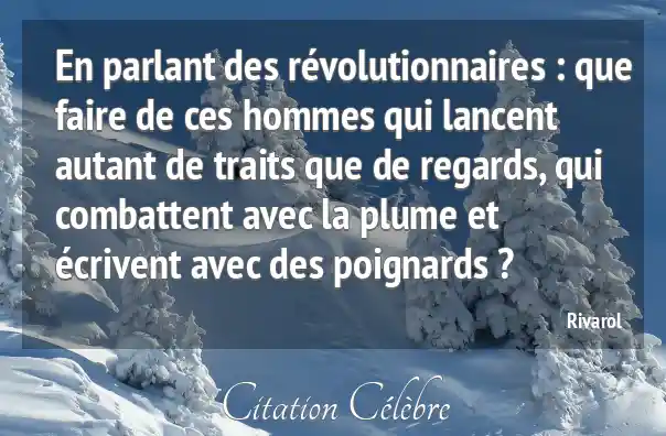 En parlant des révolutionnaires : que faire de ces hommes qui lancent autant de traits que de regards, qui combattent avec la plume et écrivent avec des poignards ?