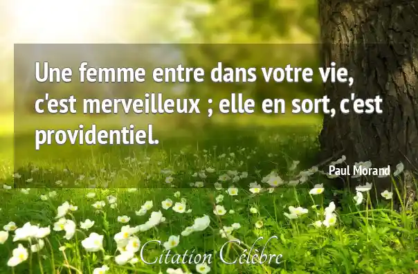 Une femme entre dans votre vie, c'est merveilleux ; elle en sort, c'est providentiel.