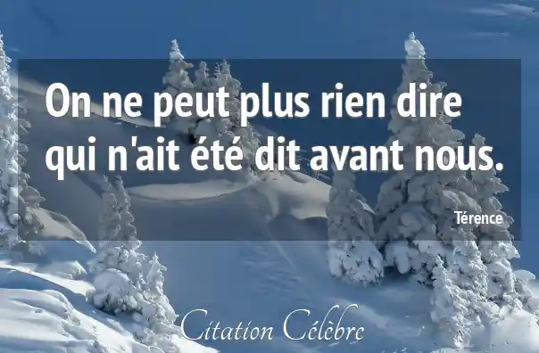 On ne peut plus rien dire qui n'ait été dit avant nous.