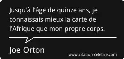 Citation Joe Orton age : Jusqu'à l'âge de quinze ans, je connaissais mieux la carte...