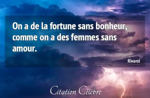 On a de la fortune sans bonheur, comme on a des femmes sans amour.