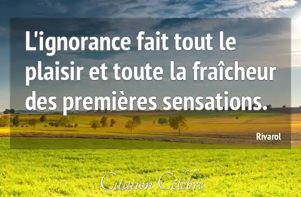 L'ignorance fait tout le plaisir et toute la fraîcheur des premières sensations.
