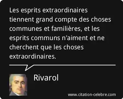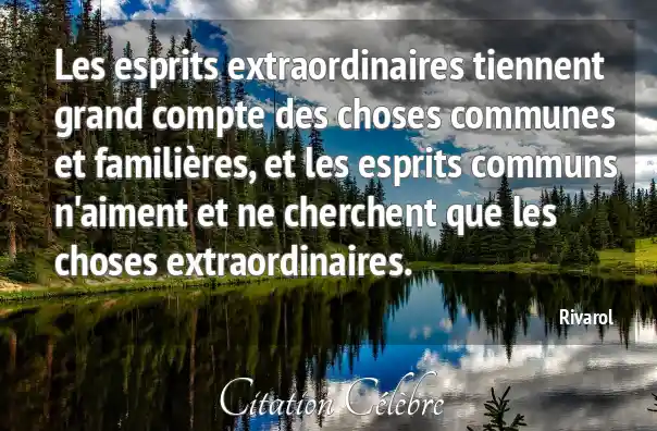 Les esprits extraordinaires tiennent grand compte des choses communes et familières, et les esprits communs n'aiment et ne cherchent que les choses extraordinaires.