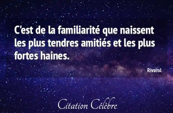 C'est de la familiarité que naissent les plus tendres amitiés et les plus fortes haines.