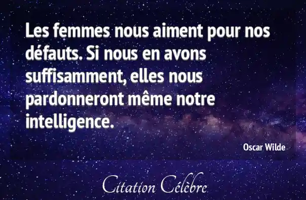Les femmes nous aiment pour nos défauts. Si nous en avons suffisamment, elles nous pardonneront même notre intelligence.