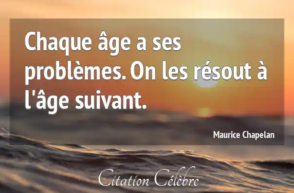 Chaque âge a ses problèmes. On les résout à l'âge suivant.