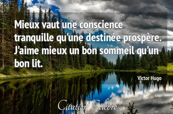 Mieux vaut une conscience tranquille qu'une destinée prospère. J'aime mieux un bon sommeil qu'un bon lit.