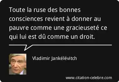 Toute la ruse des bonnes consciences revient à donner au pauvre comme une gracieuseté ce qui lui est dû comme un droit.