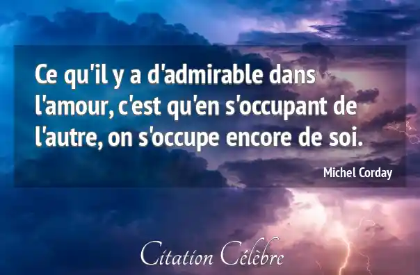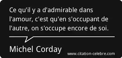 Ce qu'il y a d'admirable dans l'amour, c'est qu'en s'occupant de l'autre, on s'occupe encore de soi.