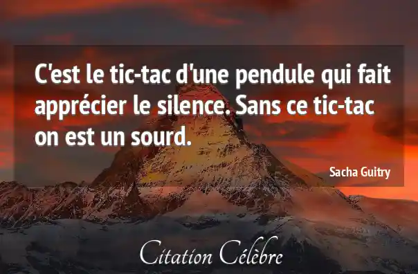 C'est le tic-tac d'une pendule qui fait apprécier le silence. Sans ce tic-tac on est un sourd.