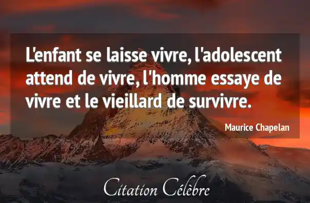 L'enfant se laisse vivre, l'adolescent attend de vivre, l'homme essaye de vivre et le vieillard de survivre.
