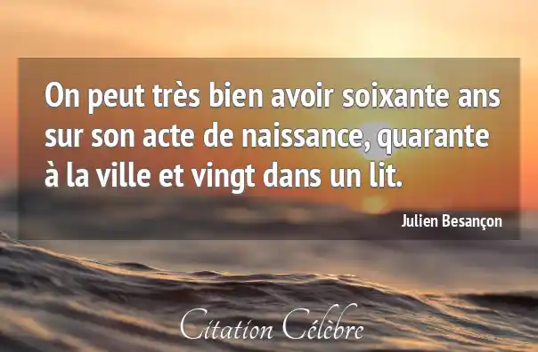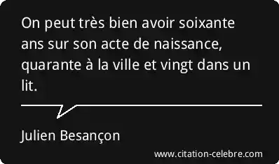 On peut très bien avoir soixante ans sur son acte de naissance, quarante à la ville et vingt dans un lit.