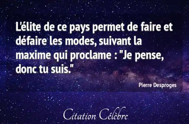 L'élite de ce pays permet de faire et défaire les modes, suivant la maxime qui proclame : "Je pense, donc tu suis."