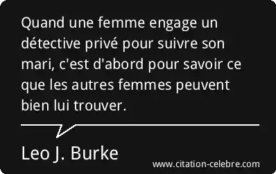 Quand une femme engage un détective privé pour suivre son mari, c'est d'abord pour savoir ce que les autres femmes peuvent bien lui trouver.