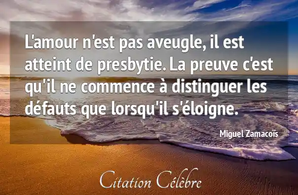 L'amour n'est pas aveugle, il est atteint de presbytie. La preuve c'est qu'il ne commence à distinguer les défauts que lorsqu'il s'éloigne.