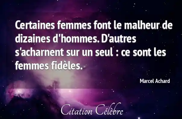 Certaines femmes font le malheur de dizaines d'hommes. D'autres s'acharnent sur un seul : ce sont les femmes fidèles.