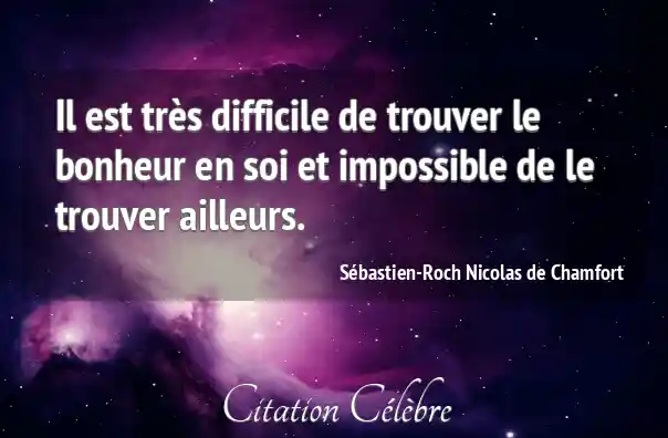 Il est très difficile de trouver le bonheur en soi et impossible de le trouver ailleurs.
