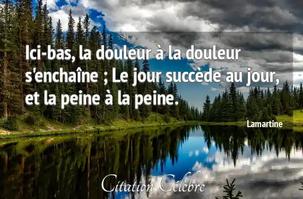 Ici-bas, la douleur à la douleur s'enchaîne ; Le jour succède au jour, et la peine à la peine.