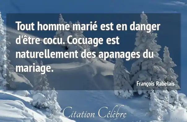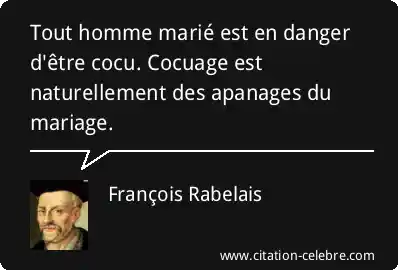 Tout homme marié est en danger d'être cocu. Cocuage est naturellement des apanages du mariage.