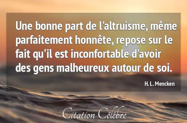 Une bonne part de l'altruisme, même parfaitement honnête, repose sur le fait qu'il est inconfortable d'avoir des gens malheureux autour de soi.