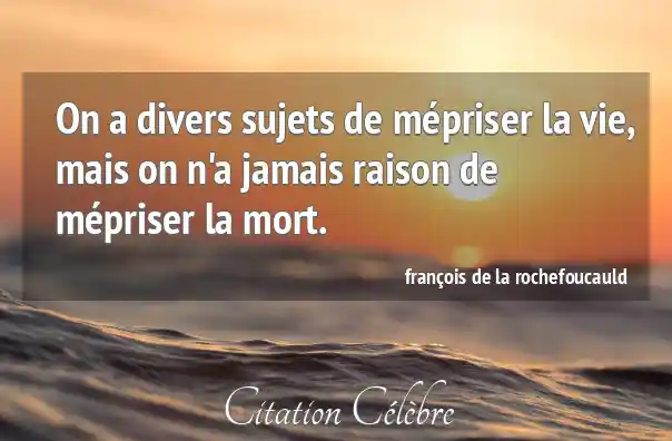 On a divers sujets de mépriser la vie, mais on n'a jamais raison de mépriser la mort.