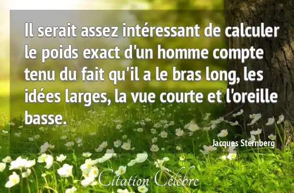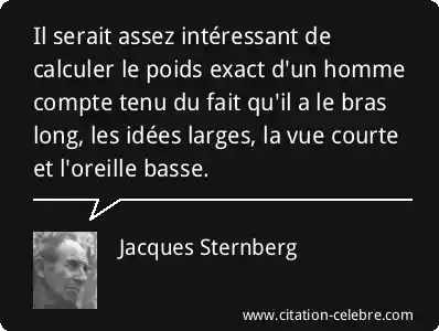 Il serait assez intéressant de calculer le poids exact d'un homme compte tenu du fait qu'il a le bras long, les idées larges, la vue courte et l'oreille basse.