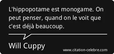 L'hippopotame est monogame. On peut penser, quand on le voit que c'est déjà beaucoup.