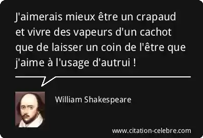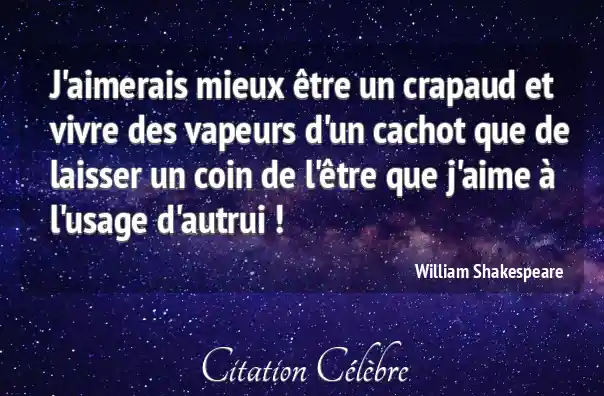 J'aimerais mieux être un crapaud et vivre des vapeurs d'un cachot que de laisser un coin de l'être que j'aime à l'usage d'autrui !