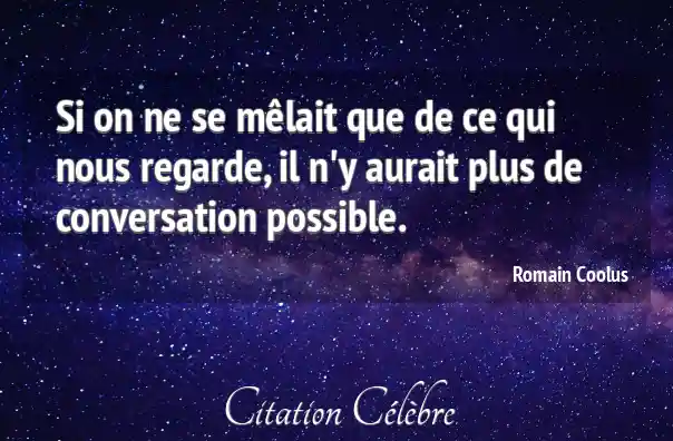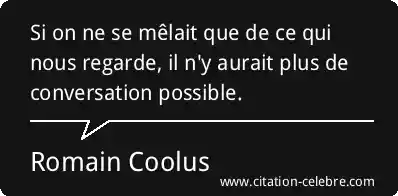 Si on ne se mêlait que de ce qui nous regarde, il n'y aurait plus de conversation possible.