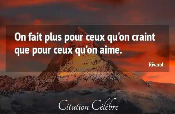 On fait plus pour ceux qu'on craint que pour ceux qu'on aime.