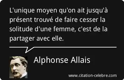 L'unique moyen qu'on ait jusqu'à présent trouvé de faire cesser la solitude d'une femme, c'est de la partager avec elle.