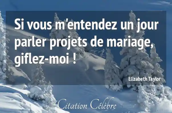 Si vous m'entendez un jour parler projets de mariage, giflez-moi !