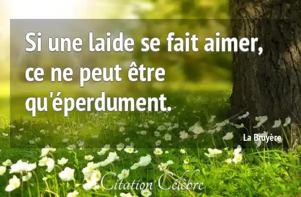 Si une laide se fait aimer, ce ne peut être qu'éperdument.